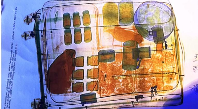 Hình ảnh X-ray khi vali của 2 người phụ nữ đi quả cổng an ninh. Ảnh: SN