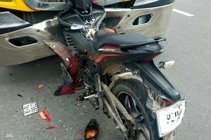 Tại hiện trường, xe máy của nạn nhân bong tróc ra 2 biển số khác nhau. Trong đó, biển số giả 83 P4-389.23 rớt xuống đường được người dân nhận ra đây là biển số xe đối tượng sử dụng khi trộm cắp xe máy trên địa bàn TP Thuận An.