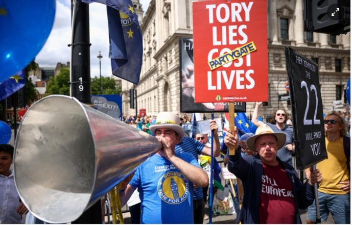 Biểu tình phản đối Thủ tướng Anh Boris Johnson ở London, ngày 6/7. Ảnh: Reuters.
