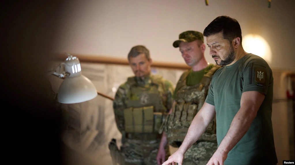 Tổng thống Ukraine Volodymyr Zelenskyy thăm một địa điểm trên chiến tuyến ở vùng Dnipropetrovsk, 8/7/2022.