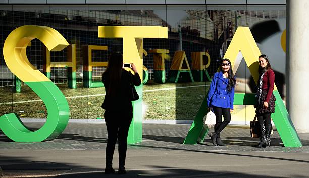 Du khách chụp hình lưu niệm bên ngoài tổ hợp giải trí, văn nghệ và sòng bài Star ở thành phố Sydney, Úc. (Peter Parks/ AFP via Getty Images)