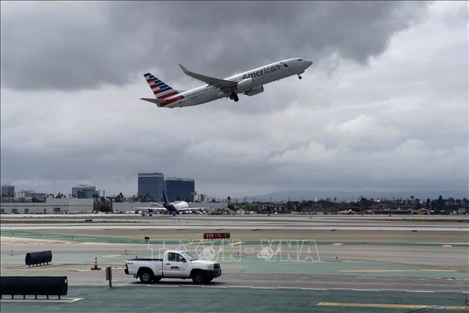 Máy bay của hãng hàng không American Airlines cất cánh từ sân bay Los Angeles, bang California, ngày 22/4/2021. Ảnh: AFP
