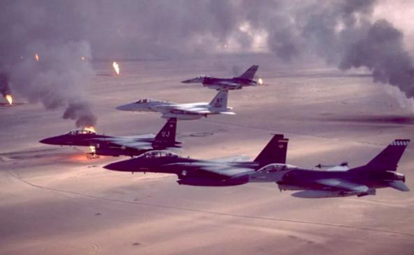 Liên quân do Mỹ dẫn đầu đã kích hoạt chiến dịch với đòn đánh phủ đầu bằng tập kích đường không, xuất kích hàng trăm phi xuất mỗi ngày, từ cả trên đất liền lẫn trên tàu sân bay.