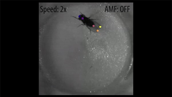 Kích hoạt nhiệt xuất hiện dưới dạng các hạt nano oxit sắt được tiêm vào não của côn trùng.Khi một từ trường được bật ở gần đó, những hạt đó sẽ nóng lên, khiến các tế bào thần kinh phát nhiệt và con ruồi sẽ áp dụng tư thế sải cánh.