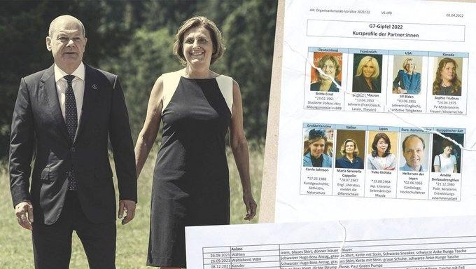 Tài liệu gần nhất là từ hội nghị thượng đỉnh G7 hồi tháng trước ở Bavaria. Đó là hồ sơ của vợ/chồng các nguyên thủ quốc gia của nhóm G7 mà bà Ernst – với tư cách phu nhân lãnh đạo nước chủ nhà – được giao nhiệm vụ tiếp đón. Dưới bức ảnh của bà Maria Cappello – vợ của Thủ tướng Ý Mario Draghi, người vừa từ chức – có ghi dòng chữ “tránh công chúng”. Bà Yuko Kishida, phu nhân của thủ tướng Nhật Bản, được gọi là "Thư ký tại Mazda”.