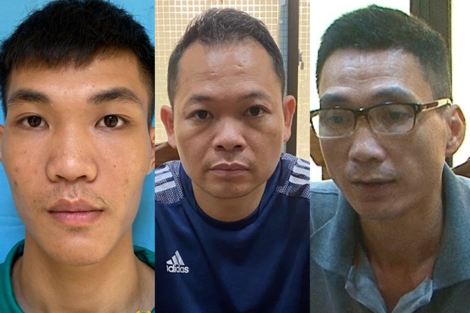 Các đối tượng Hứa Mạnh Cường, Hoàng Văn Thư và Nguyễn Xuân Đạt (từ trái qua) tại cơ quan công an (Ảnh: Nguyệt My).