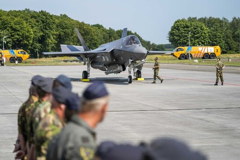 Người lính Hà Lan đứng quan sát máy bay chiến đấu F-35 đầu tiên được đưa đến tại Căn cứ Không quân Volkel ở Hà Lan. Ảnh: Shutterstock.