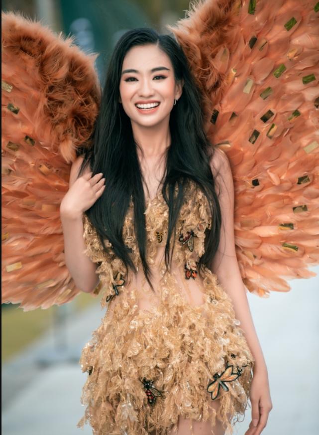 Các thí sinh trong top 38 cùng 3 hoa, á hậu đương nhiệm diện những bộ đồ rực rỡ với đôi cánh cầu kỳ.