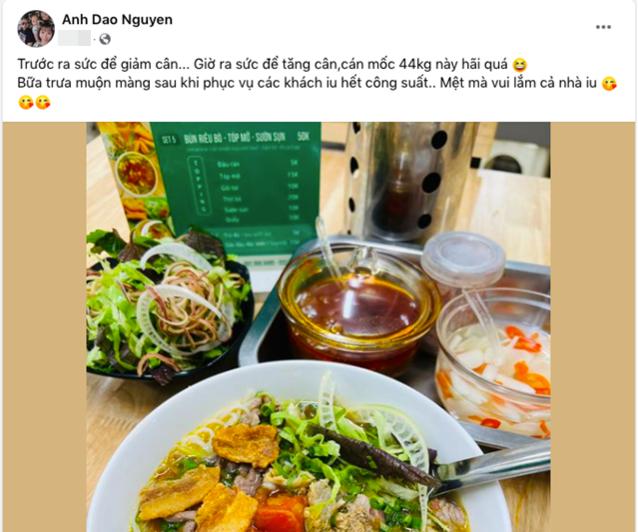 “Trước ra sức để giảm cân... Giờ ra sức để tăng cân, cán mốc 44 kg này hãi quá”, bà xã Hồng Đăng chia sẻ.
