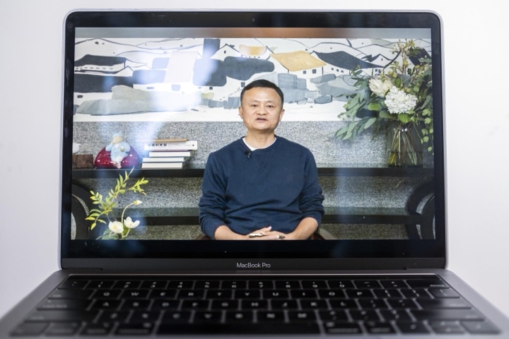 Jack Ma xuất hiện trở lại, có bài nói chuyện qua video vào tháng 1/2021. Ảnh: Bloomberg.