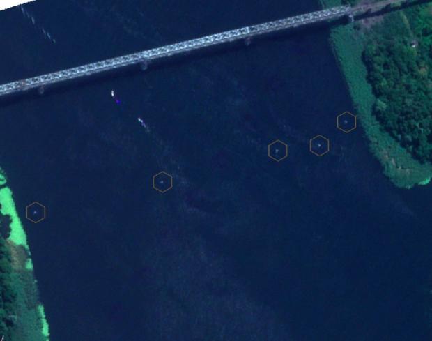 Dựa trên ảnh vệ tinh, có thể thấy cây cầu đường sắt bắc qua Dnepr hiện được bao phủ bởi 5 tấm phản xạ radar, trong khi cây cầu đường bộ được bao phủ bởi 32 tấm phản xạ. Vị trí đặt các tấm phản xạ được ưu tiên nhằm bảo vệ các trụ đỡ cầu, vì nếu các trụ đỡ này bị phá hủy, việc xây dựng lại cầu có thể mất hàng tháng, thậm chí hàng năm.