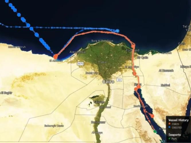 Trong ngày 24/7, một lô hàng gồm 700.000 thùng dầu có xuất xứ từ Nga đã được chuyển tới cảng El Hamra của Ai Cập. Chỉ vài giờ đồng hồ sau đó, toàn bộ số dầu này được di chuyển lên một tàu chở hàng khác, điểm đến của chuyến tàu này vô cùng khó nắm bắt.