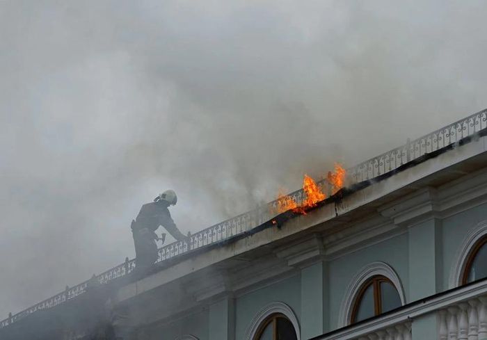Lính cứu hỏa cố gắng dập tắt đám cháy sau một cuộc tấn công ở nhà máy Zaporizhzhia. Ảnh: REUTERS