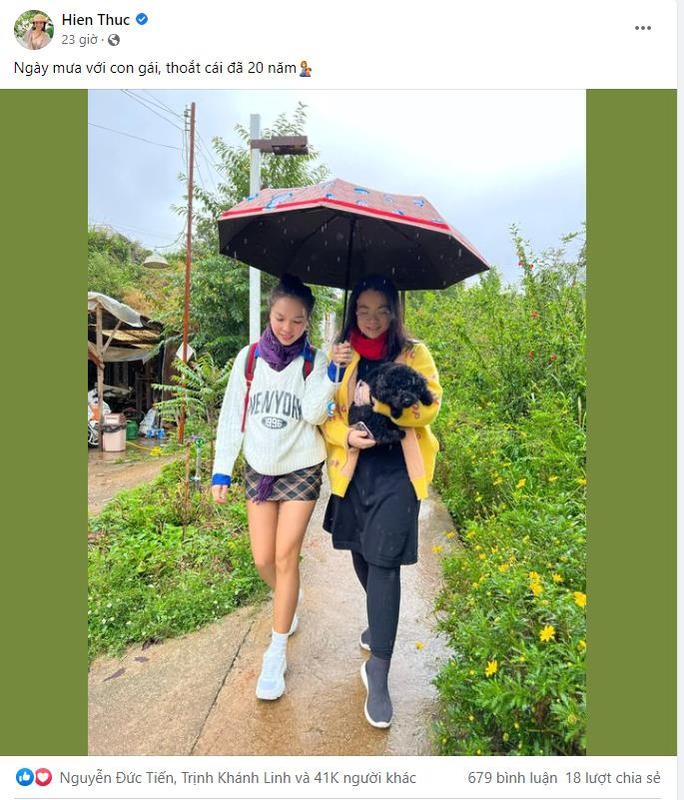 Trên trang cá nhân, Hiền Thục gây chú ý khi đăng tải hình ảnh chụp cùng con gái Gia Bảo kèm dòng trạng thái: "Ngày mưa với con gái, thoắt cái đã 20 năm". Con gái của giọng ca "Điều Em Lo Sợ" gây chú ý bởi chiều cao vượt trội cùng đường nét gương mặt xinh xắn.