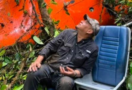 Ông Flores nói trong video: "Những người anh em, chúng tôi gặp nạn tại khu vực núi có độ cao 1.400 m', đồng thời ông chỉ vào những mảnh vỡ của máy bay trong những tán lá rậm rạp ở phía sau.
