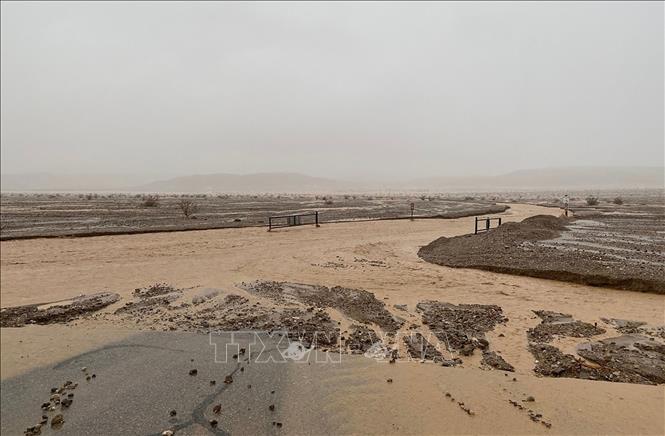 Nước lũ dâng cao do mưa lớn tại Công viên quốc gia Death Valley ở bang California (Mỹ) ngày 5/8/2022. Ảnh: AFP/TTXVN