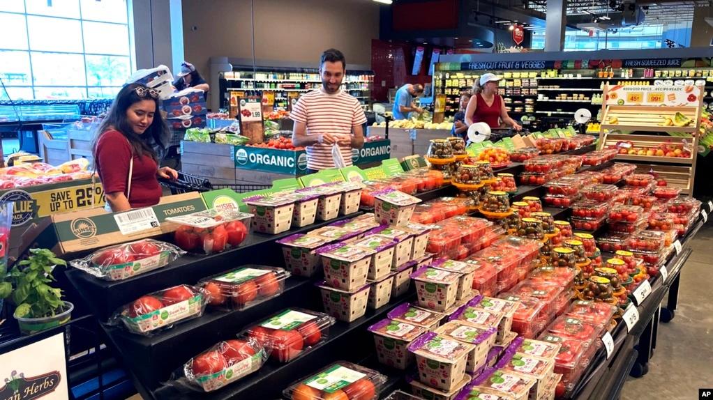 Thực phẩm bày bán trong một siêu thị ở Mỹ. Giá thực phẩm ở Mỹ đã tăng mạnh trong thời gian qua