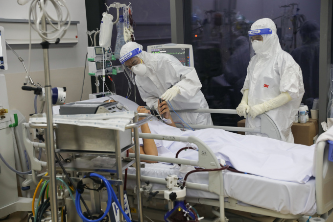 Bác sĩ điều trị, chăm sóc người mắc Covid-19 nặng tại TP HCM. Ảnh: Quỳnh Trần