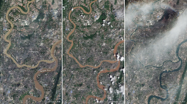 Theo ảnh chụp từ vệ tinh Copernicus Sentinel-2 vào tháng 8 năm 2020, 2021 và 2022 về sông Dương Tử và sông Gia Lăng, cho thấy màu sắc sông Dương Tử trong năm nay có sự khác biệt đáng kể. Nguyên nhân là do nhiệt độ cao khiến nước sông bốc hơi mạnh hơn. Ngoài ra, do lượng mưa rất ít nên mực nước cũng bị hạ thấp.