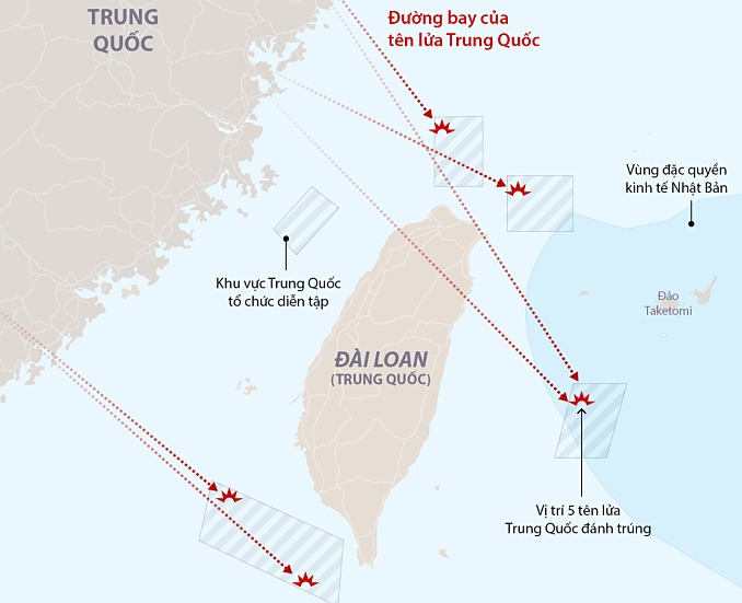 Sau khi Chủ tịch Hạ viện Mỹ Nancy Pelosi thăm Đài Loan, Trung Quốc đã phản ứng bằng cách tổ chức đợt tập trận bắn đạn thật với quy mô chưa từng có, triển khai nhiều tiêm kích, tàu chiến và phóng loạt tên lửa đạn đạo xuống 6 khu vực tập trận xung quanh hòn đảo.