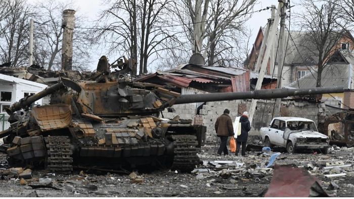 Xe tăng Ukraine bị phá hủy sau các đợt tấn công của Nga. Ảnh: RT