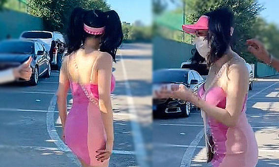 Trong video được đăng lên mạng xã hội, một phụ nữ mặc bộ đồ thể thao màu đen và trắng, tóc tết loay hoay đứng trên ván trượt với sự trợ giúp của diễn viên Chung Lệ Đề. Trong khi đó, Chung Lệ Đề mặc váy bó sát màu hồng, tất họa tiết hồng kết hợp sandal cao gót, để lộ dáng người tròn trịa.