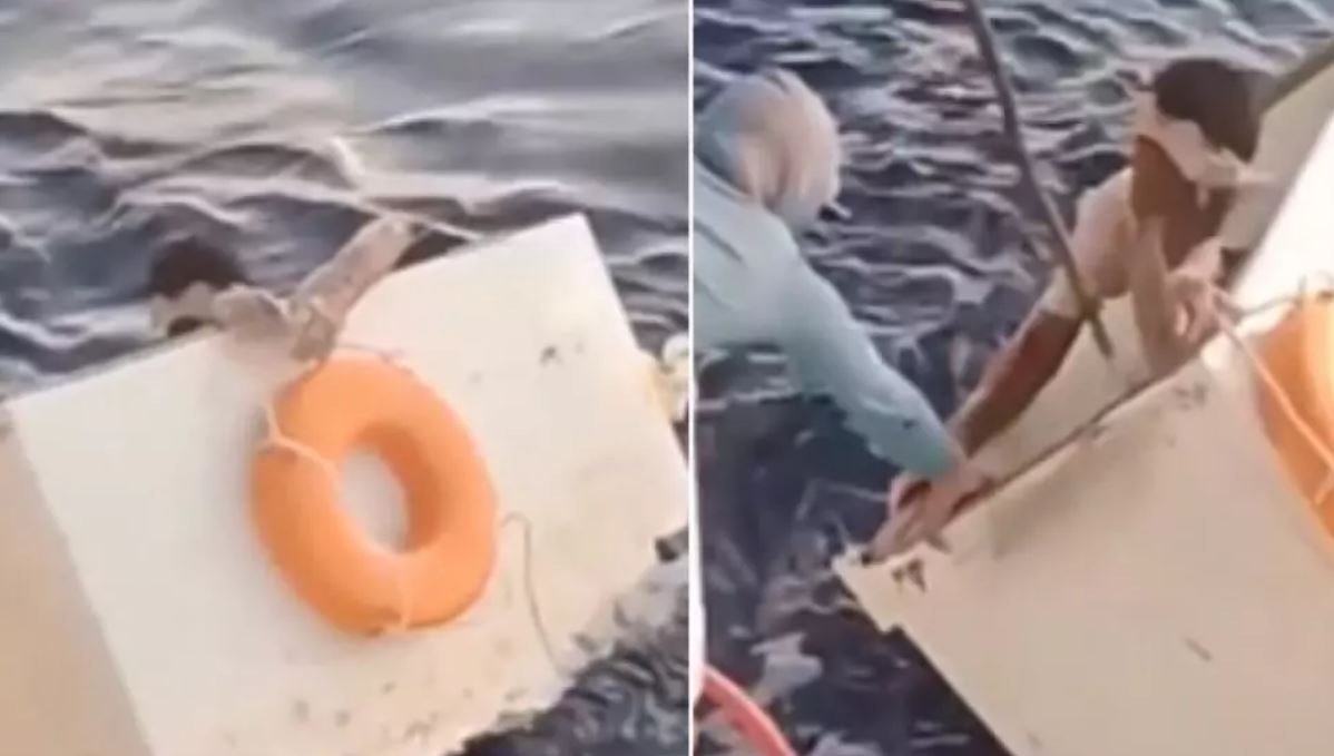 Khoảnh khắc nam ngư dân được cứu sống sau nhiều ngày lênh đênh trên biển (Ảnh: Metro - cắt từ clip).