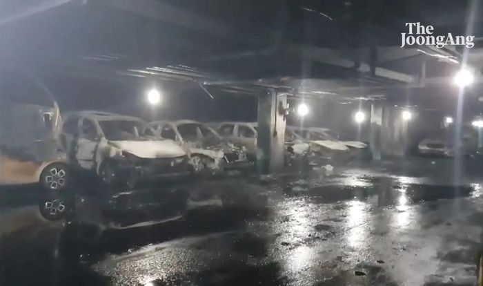 Đúng lúc này, một ngọn lửa bùng lên và nhanh chóng cháy lan ra toàn bộ căn hầm để xe ô tô của tòa chung cư hạng sang nằm ở thành phố Cheonan, và khiến hàng trăm chiếc ô tô bị thiêu cháy.