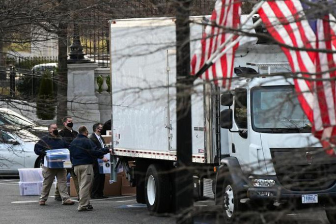 Những ngày trước khi ông Trump mãn nhiệm, nhiều xe tải, phụ tá và hàng đống hộp chứa đồ lưu niệm và ảnh xuất hiện trên đường lái xe vào Nhà Trắng.