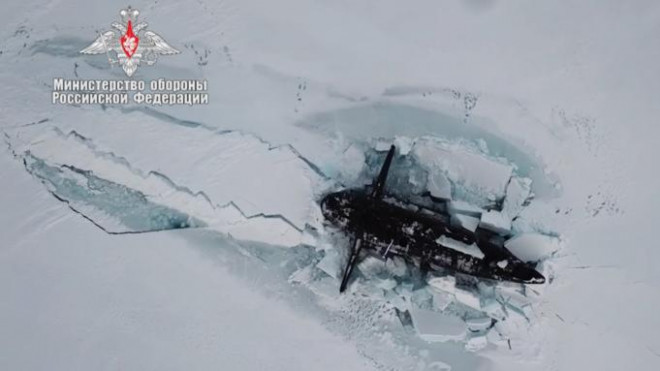 "Tàu ngầm Mỹ chỉ xuyên qua một phần lớp băng và không thể phóng tên lửa. Trong khi các thủy thủ cố gắng đưa phần còn lại của thân tàu lên mặt nước thì phần dưới lại bị đóng băng. Như vậy tàu ngầm Mỹ đã bị chặn trong băng", tờ Sohu nói rõ.