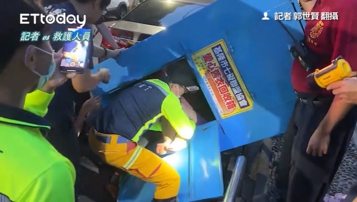 Cảnh sát mất 2 tiếng tìm kiếm người phụ nữ bị mắc kẹt ở chỗ không ngờ. Nam cảnh sát sau 2 tiếng lần theo âm thanh yếu ớt, đã tìm thấy người phụ nữ bị mắc kẹt trong thùng đựng quần áo tái chế.
