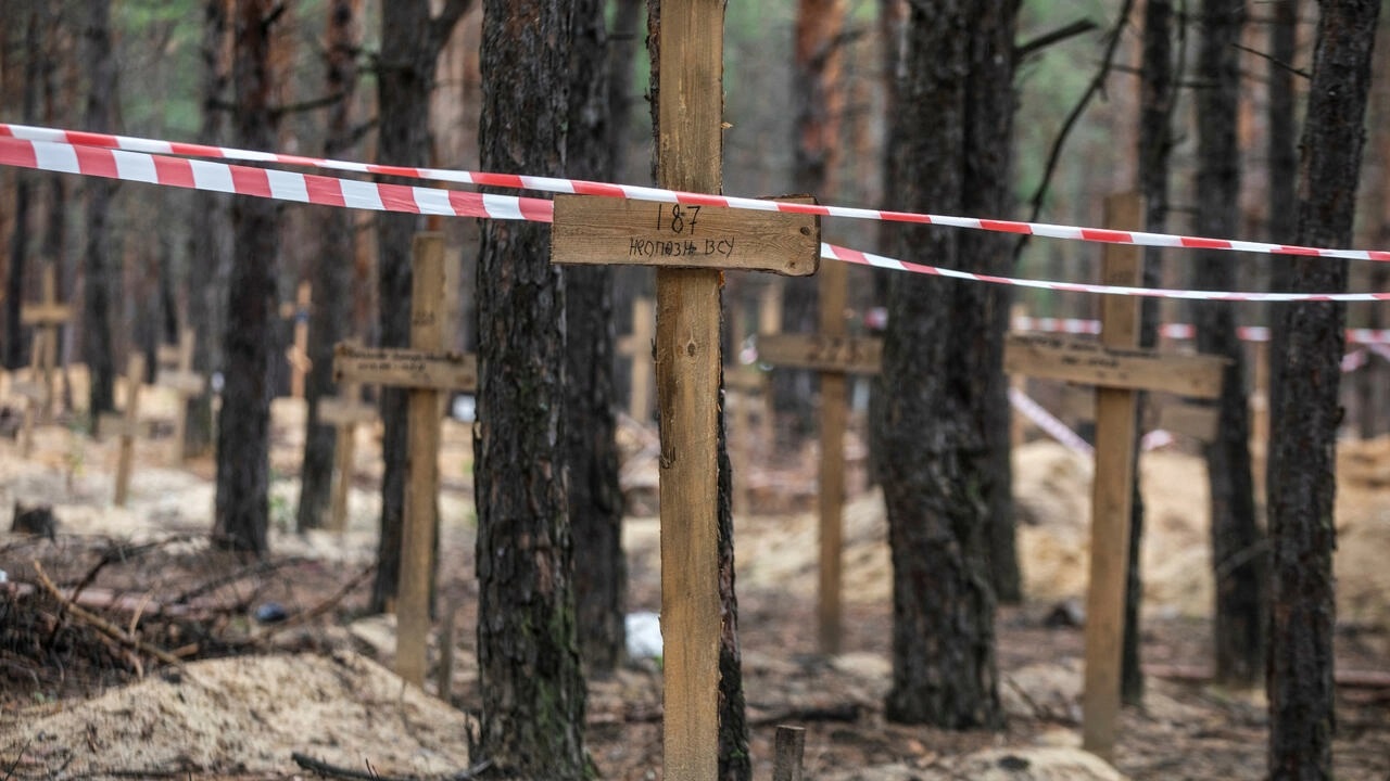 Các ngội mộ không rõ danh tính tại một nghĩa trang tạm bợ ở Izium, Ukraina, thành phố mới được giải phóng khỏi tay quân Nga, ngày 15/9/2022 . REUTERS - STRINGER