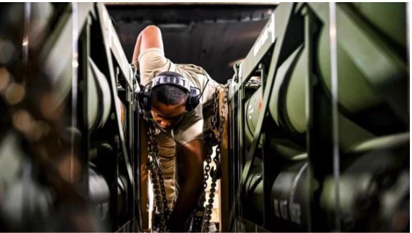 Chất đạn cho Ukraine tại căn cứ liên hợp của Mỹ.
