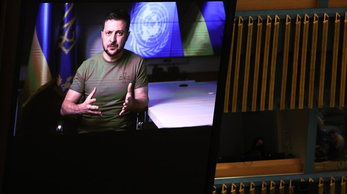 Trong bài phát biểu được chiếu trước Đại hội đồng Liên Hợp Quốc, Tổng thống Ukraine Zelensky cho biết Kiev có kế hoạch 5 điểm để thiết lập một nền hòa bình lâu bền, bao gồm không chỉ trừng phạt Moscow mà còn khôi phục an ninh và toàn vẹn lãnh thổ của Ukraine và cung cấp đảm bảo cho an ninh lãnh thổ của Ukraine.