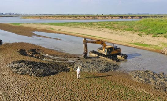Mực nước hồ chứa nước ngọt lớn nhất của Trung Quốc xuống mức thấp nhất trong lịch sử. (Ảnh: China News Service)