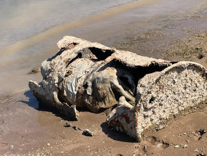 Phát hiện thùng chứa thi thể khi mực nước tại hồ Mead xuống thấp. Ảnh: LA Times