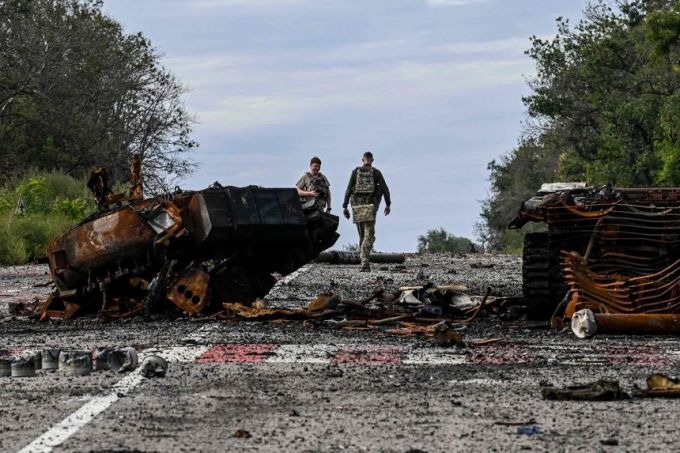 Xe quân sự bị phá hủy trên đường ở thành phố Balakliya, vùng Kharkov, miền đông bắc Ukraine hôm 11/9. Ảnh: AFP.