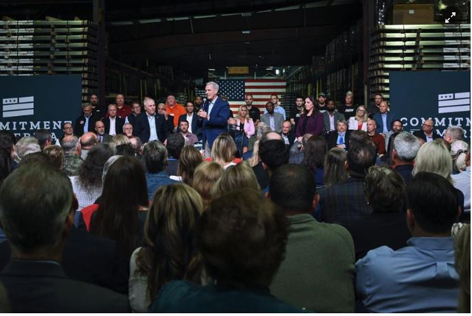 Lãnh đạo đảng Cộng hòa tại Hạ viện Mỹ Kevin McCarthy, trong chuyến thăm tới thành phố Monongahela vào hôm 23/9, đã công bố khẩu hiệu và chương trình nghị sự của đảng Cộng hòa trong cuộc bầu cử giữa nhiệm kỳ 2022. Ảnh: AP.