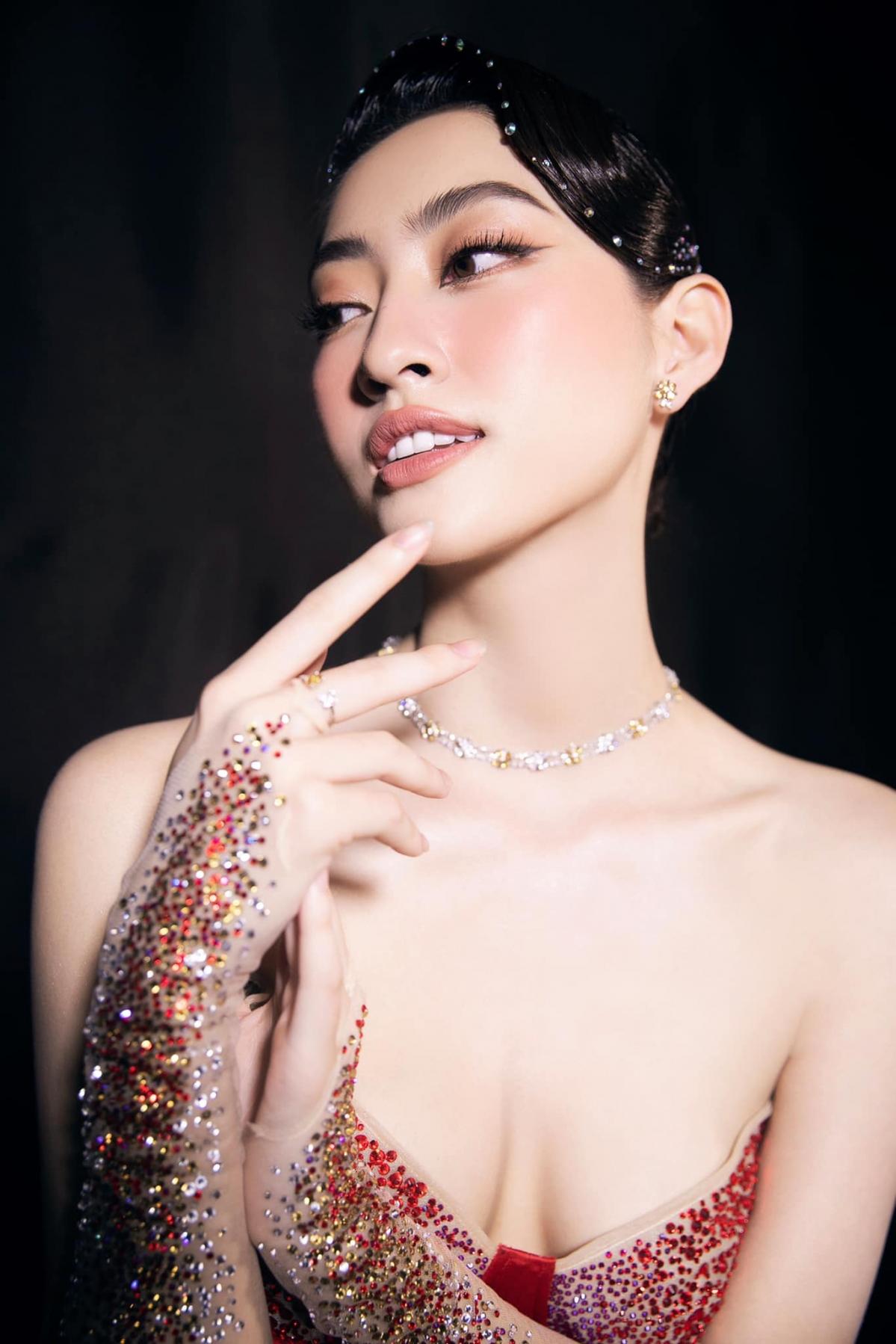 Tạm rũ bỏ hình ảnh dịu dàng, Lương Thùy Linh hóa quý cô sang chảnh, đầy sức hút bởi lối trang điểm sắc sảo cùng gu thời trang táo bạo.
