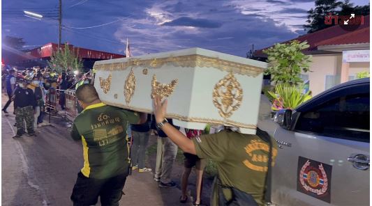Người dân mang quan tài chuẩn bị an táng các nạn nhân vụ xả súng ngày 6/10 ở Thái Lan. Ảnh: Khaosod.