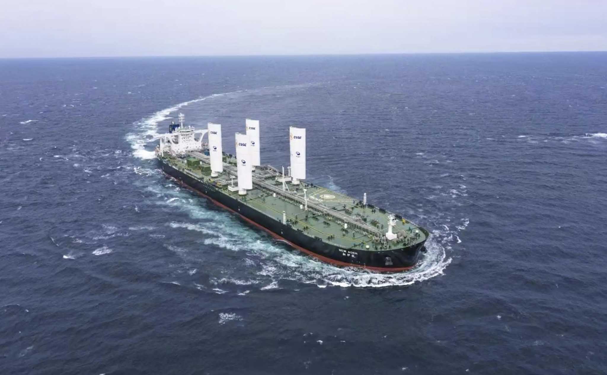 Khi ngành vận tải biển chuyển sang giai đoạn khử cacbon. Những cánh buồm khổng lồ có thể là một phần của giải pháp. Công ty Vận chuyển Năng lượng Trung Quốc vừa nhận một tàu siêu tải mới có bốn cánh buồm lớn, nhờ đó sẽ giảm mức tiêu thụ nhiên liệu trung bình gần 10%.
