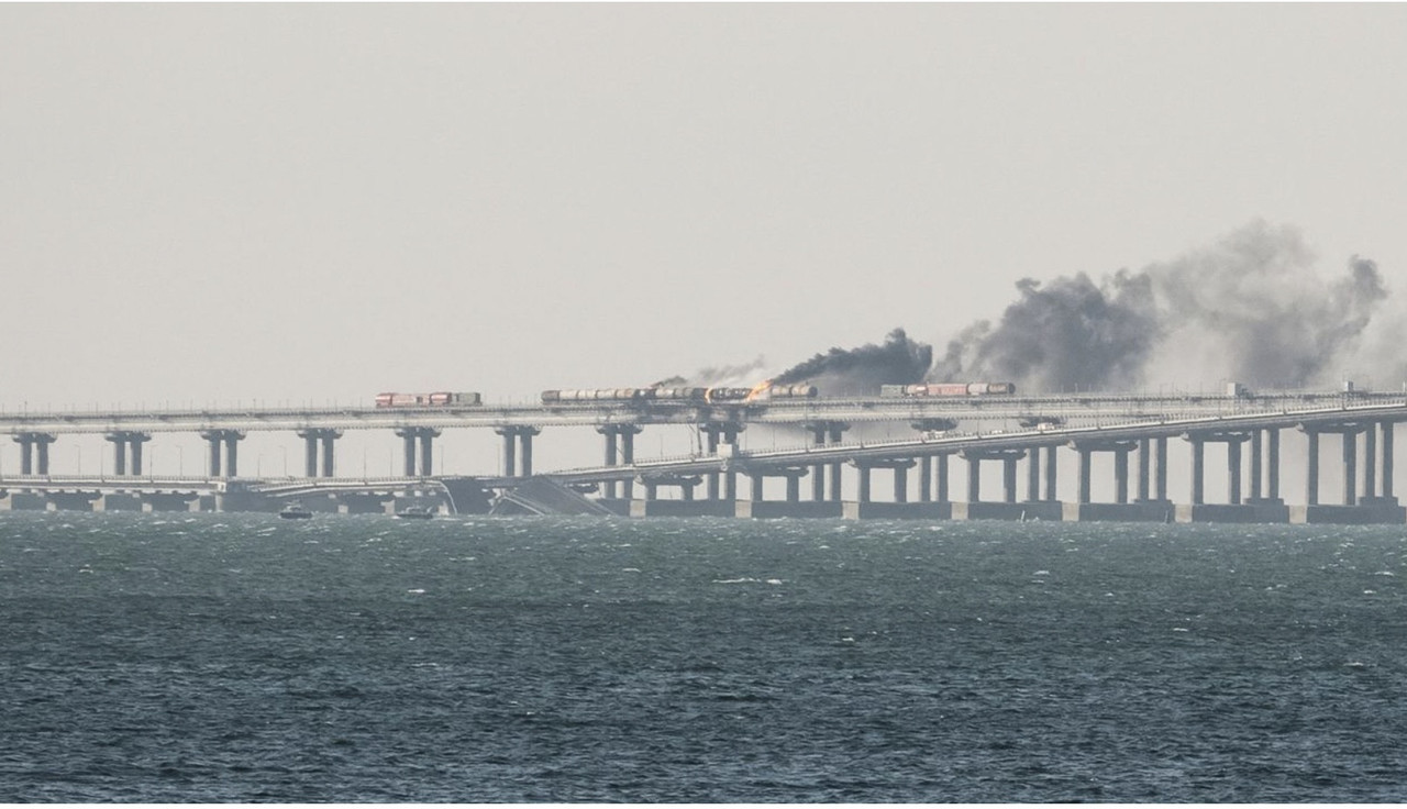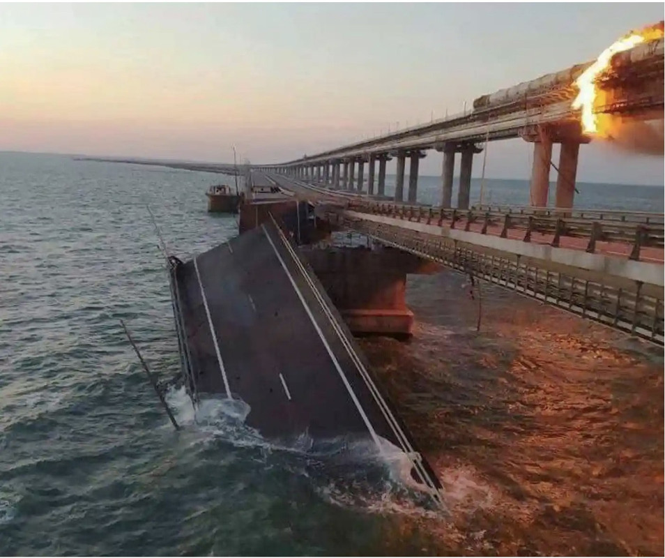 Một vụ nổ trên cây cầu đường bộ và đường sắt chiến lược nối Nga với bán đảo Crimea xảy ra hôm thứ Bảy 8/10, làm sập một số đoạn bên một chiều đường. Sau vụ nổ, các quan chức Ukraine đăng các thông điệp hoan hỉ nhưng không trực tiếp nhận trách nhiệm về vụ này, khiến các quan chức Nga cho biết, vụ nổ sáng 8/10 đã làm cây cầu dài nhất châu Âu nối đất liền của Nga với Bán đảo Crưm bị sập.