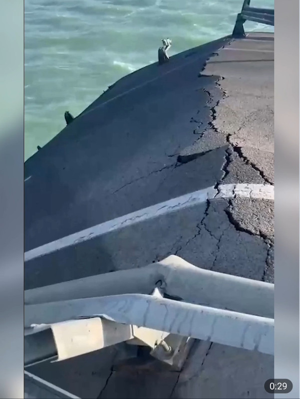 Ông Sergey Aksenov, người đứng đầu Crưm do Nga bổ nhiệm, xác nhận, hai nhịp của cầu đường bộ nối từ Krasnodar tới Kerch đã bị sập.