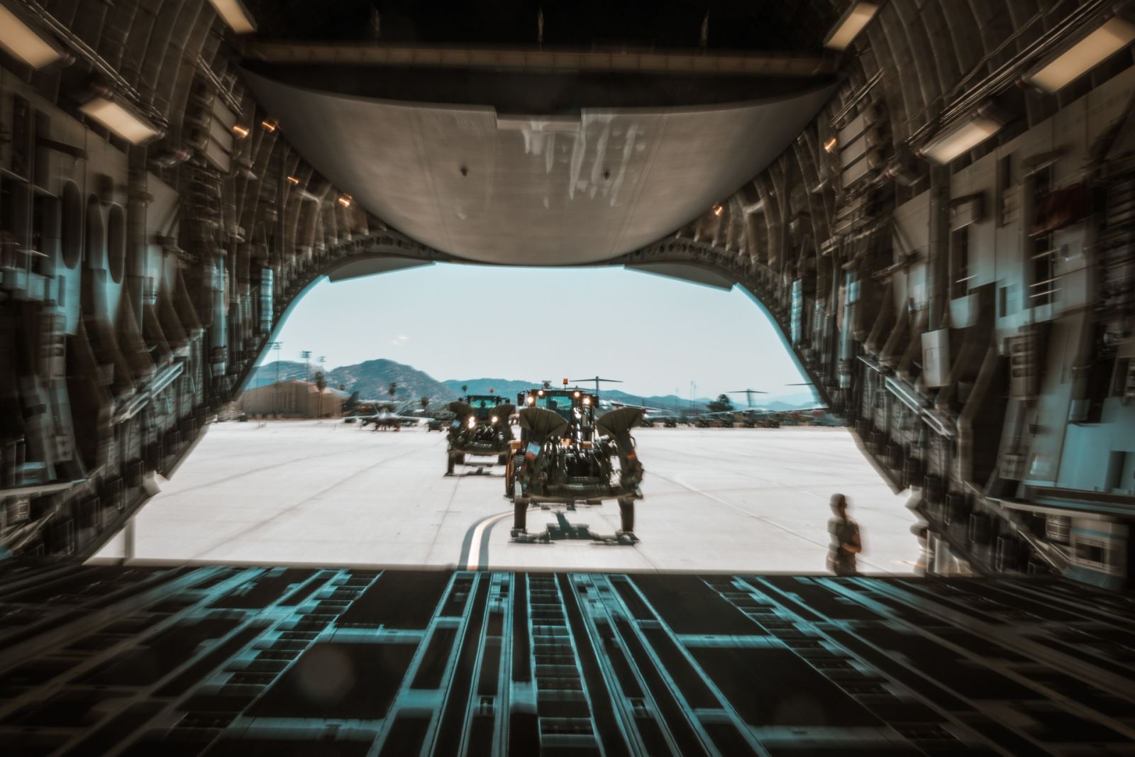 Lựu pháo được đưa lên máy bay vận tải của quân đội Mỹ để chuyển tới Ukraine. Ảnh: Bộ Quốc phòng Mỹ
