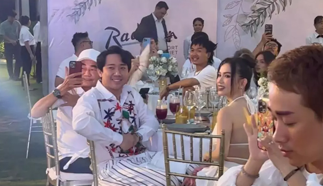 Có thể thấy dàn sao Việt đã đến sớm một ngày để chung vui với cô dâu chú rể trong tiệc chia tay đời độc thân. Dress code được chọn lựa là màu trắng đồng điệu. Trấn Thành chia sẻ: “Cập nhật tình hình là tụi em ra tới Phan Thiết để ăn cưới rồi nha! Mai cưới! Bữa nay tụ tập trước ạ”.