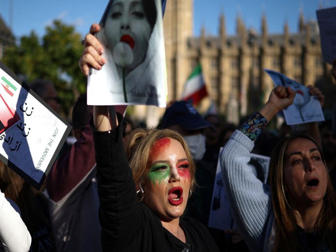 Người biểu tình phẫn nộ vì cái chết của Mahsa Amini, cô gái trẻ thiệt mạng trong lúc bị cảnh sát Iran giam giữ. Ảnh: Reuters