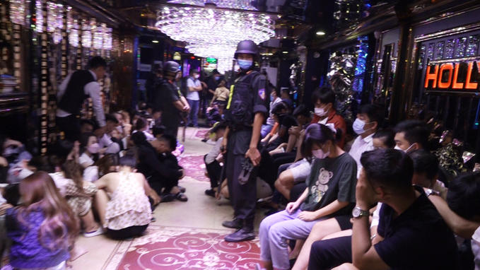 Kiểm tra các phòng hát, cảnh sát phát hiện nhiều nhân viên và khách sử dụng trái phép chất ma túy. Nhiều túi nylon chứa ma túy dạng viên nén bị thu giữ. Trong 152 người bị đưa về trụ sở có 18 người dương tính chất ma túy.