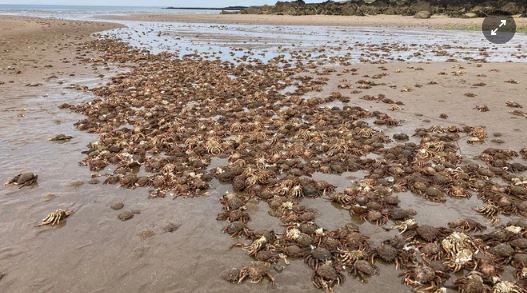 Một số báo cáo đã đặt ra giả thuyết rằng việc thay đổi nhiệt độ đột ngột của nước biển, gây ra bởi tình trạng biến đổi khí hậu, đã dẫn đến cái chết của hàng nghìn con ghẹ trên.