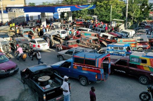 Nhiều ôtô tập trung tại một cây xăng ở Haiti trong bối cảnh giá nhiên liệu nước này tăng cao. Ảnh: Reuters.