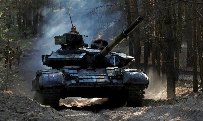 Xe tăng Ukraine triển khai ở tỉnh đông bắc Kharkov hôm 16/10. Ảnh: Reuters.